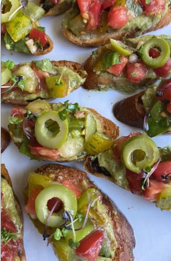 Heirloom Tomato Bruschetta with Zucchini Pesto